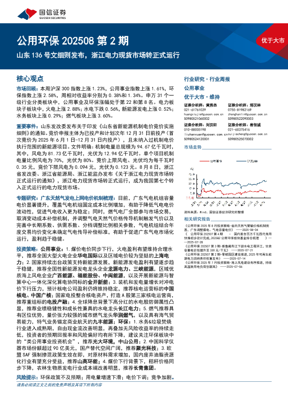 【国信证券】【202508】公用环保行业202508第2期:山东136号文细则发布,浙江电力现货市场转正式运行-30页
