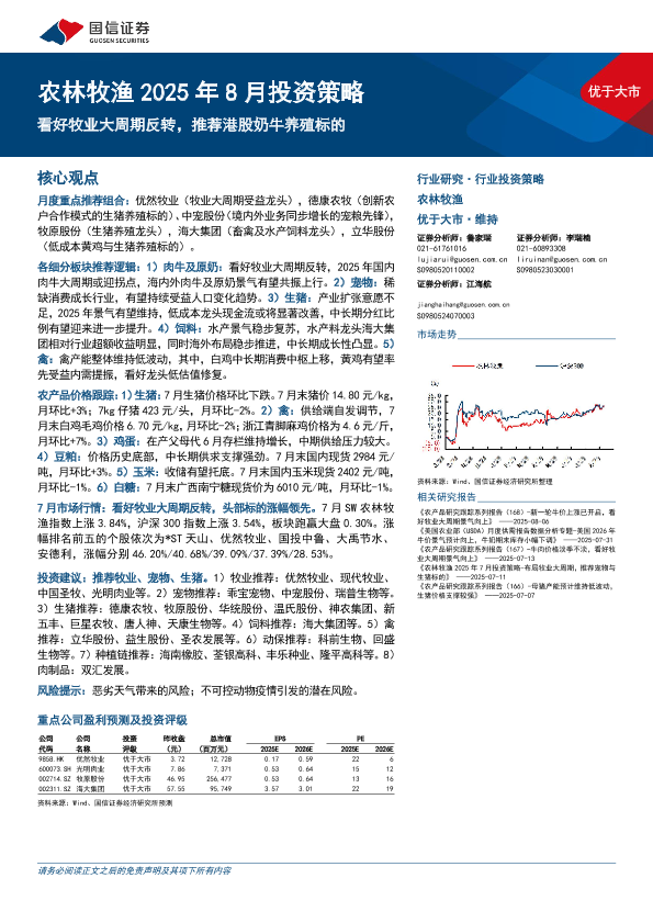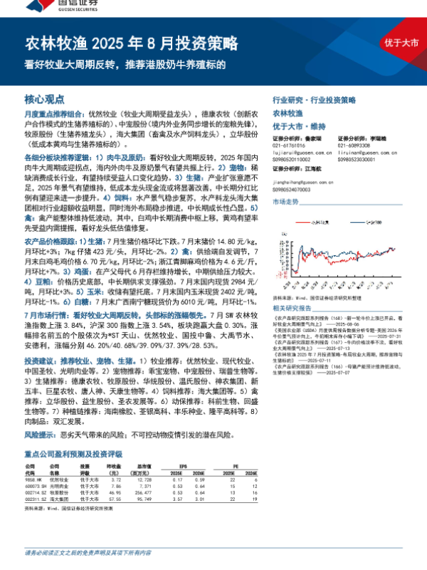 【国信证券】【202508】农林牧渔 2025年 8月投资策略 优于大市-27页