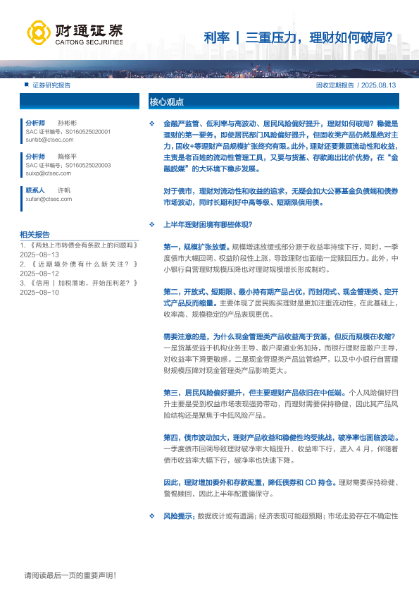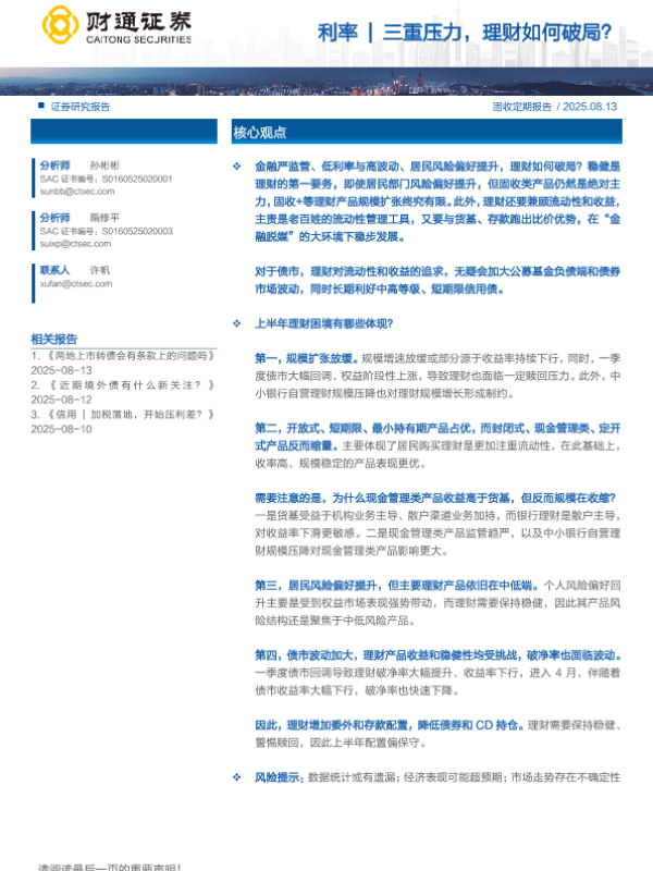 【财通证券】【202508】利率|三重压力,理财如何破局?-11页