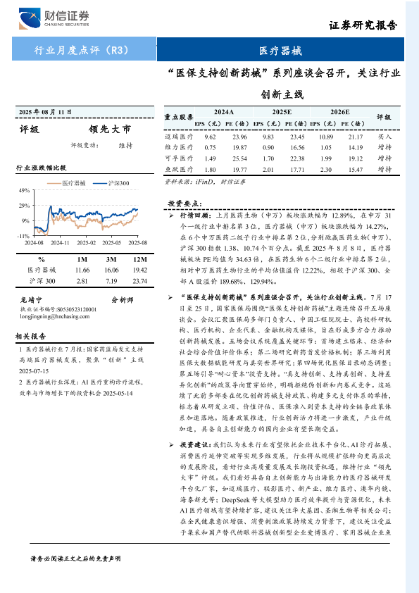【财信证券】【202508】医疗器械行业月度点评:“医保支持创新药械”系列座谈会召开,关注行业创新主线-11页