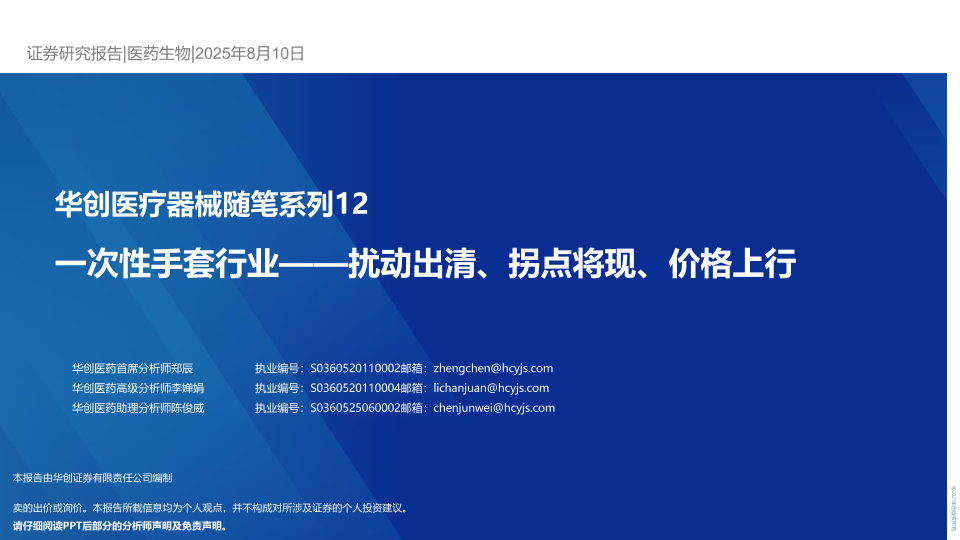 【华创证券】【202508】一次性手套行业——扰动出清、拐点将现、价格上行-20页