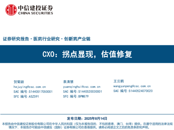 【中信建投证券】【202508】医药行业研究·创新药产业链:CXO:拐点显现,估值修复-56页
