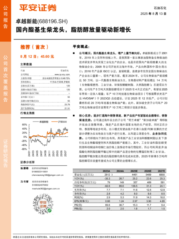 【平安证券】【202508】国内酯基生柴龙头,脂肪醇放量驱动新增长-28页