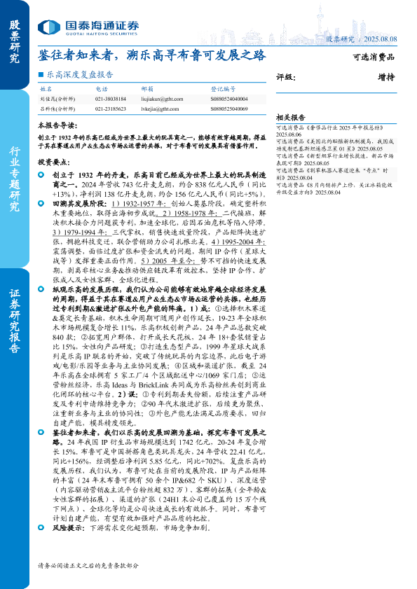 【国泰海通证券】【202508】可选消费品行业专题研究:鉴往者知来者,溯乐高寻布鲁可发展之路-39页