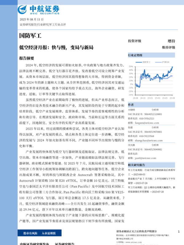 【中航证券】【202308】国防军工行业低空经济月报:快与慢,变局与新局-27页