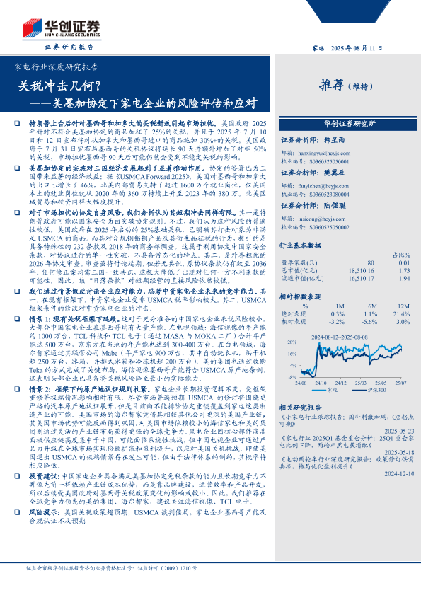 【华创证券】【202508】关税冲击几何?——美墨加协定下家电企业的风险评估和应对-19页