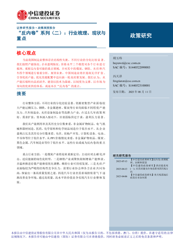 【中信建投证券】【202508】“反内卷”系列(二):行业梳理、现状与重点-20页
