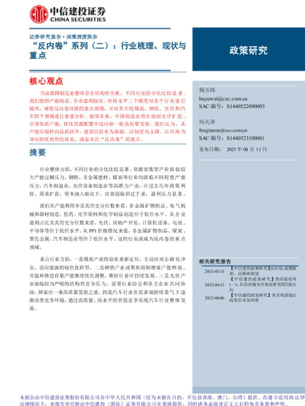 制造业 反内卷 行业分析 政策研究 产能过剩