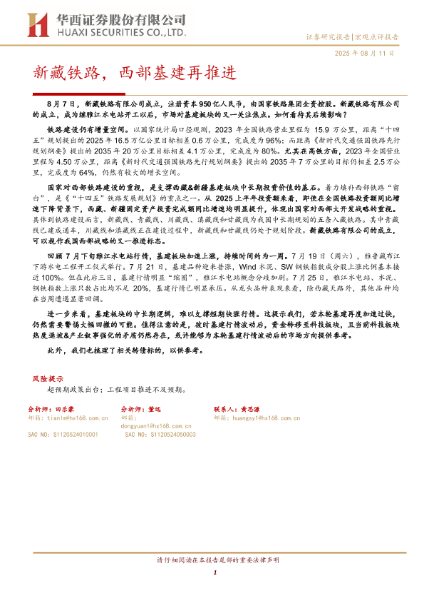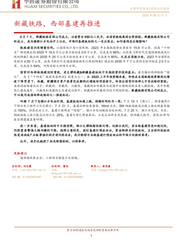 【华西证券】【202508】新藏铁路,西部基建再推进-10页