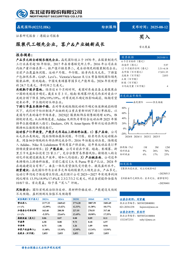 【东北证券】【202508】晶苑国际(2232.HK)服装代工领先企业,客户&产业链新成长-30页