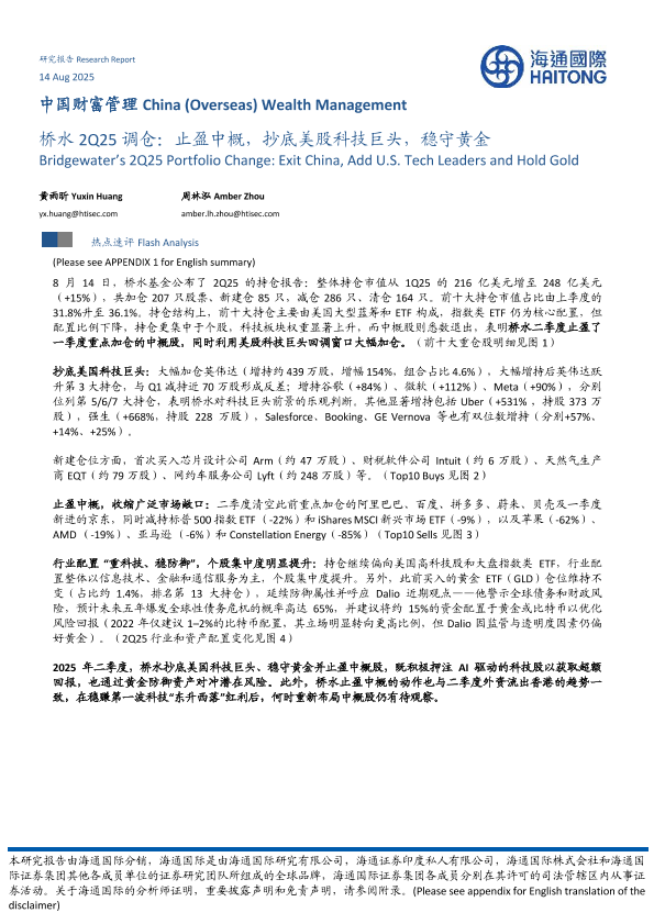 【海通国际】【202508】桥水2Q25调仓:止盈中概,抄底美股科技巨头,稳守黄金-11页