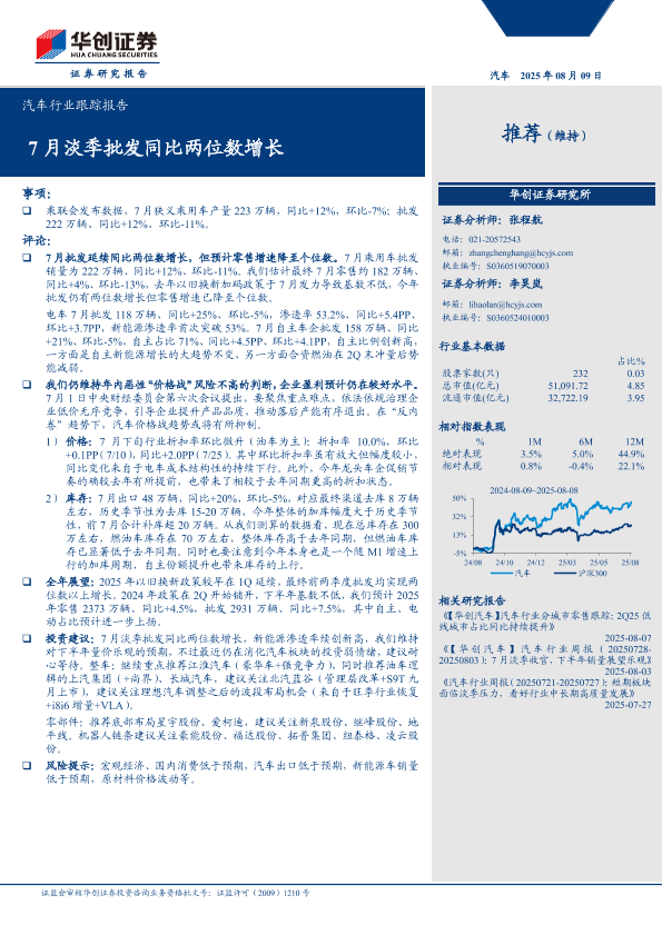 【华创证券】【202508】汽车行业跟踪报告:7月淡季批发同比两位数增长-12页