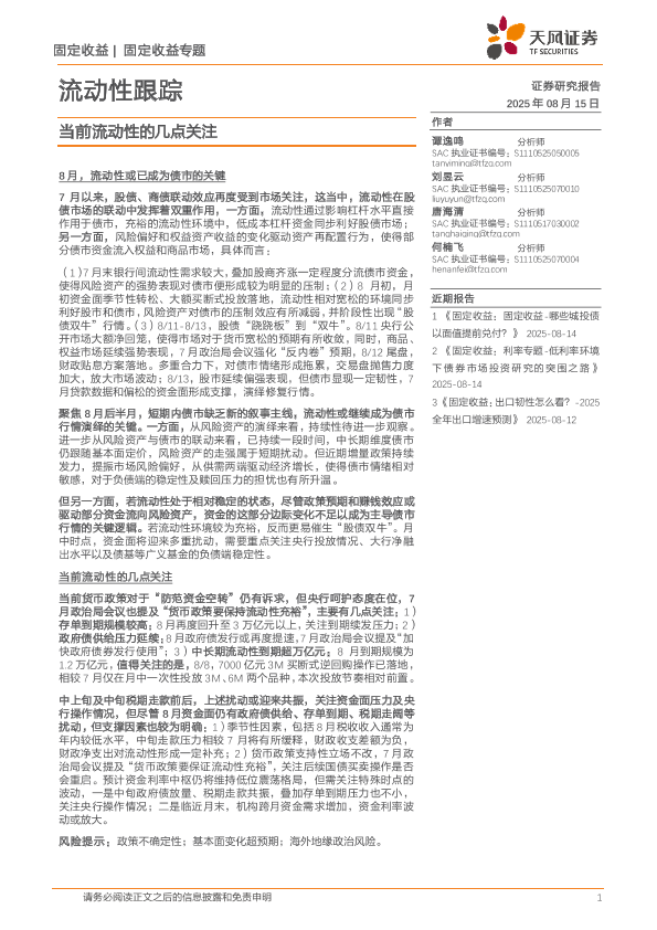 【天风证券】【202508】流动性跟踪:当前流动性的几点关注-14页