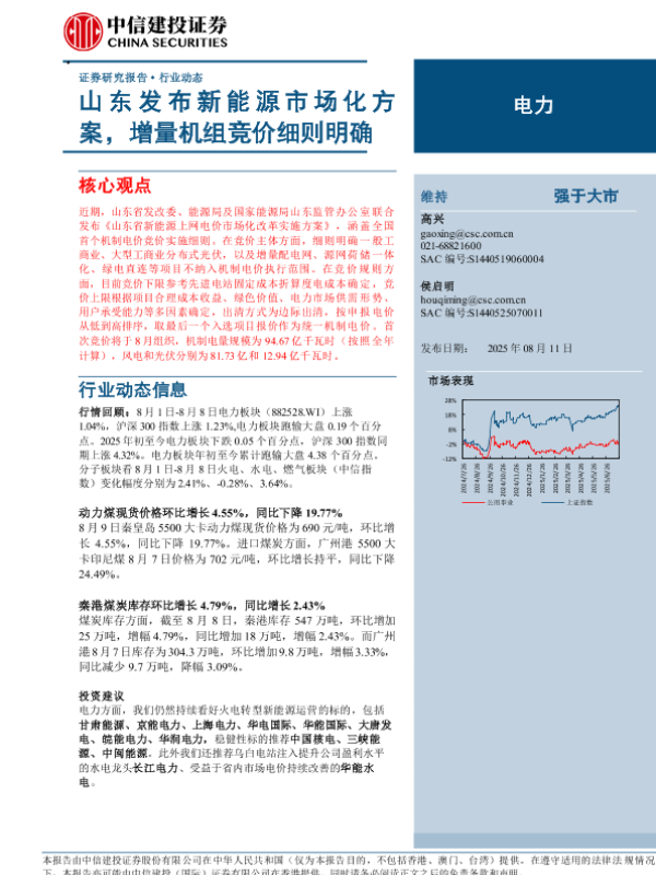 【中信建投证券】【202508】山东发布新能源市场化方案,增量机组竞价细则明确-15页