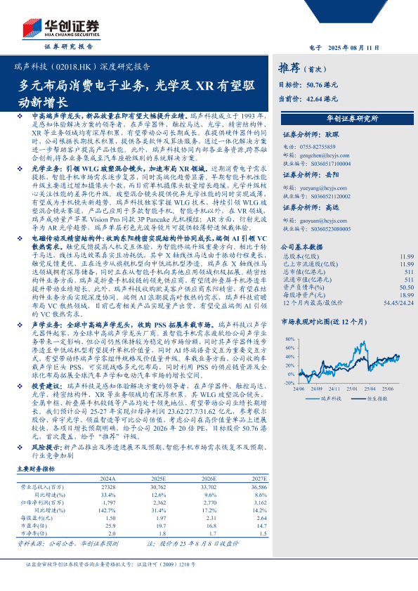 【华创证券】【202508】瑞声科技(02018.HK)深度研究报告:多元布局消费电子业务,光学及XR有望驱动新增长-42页