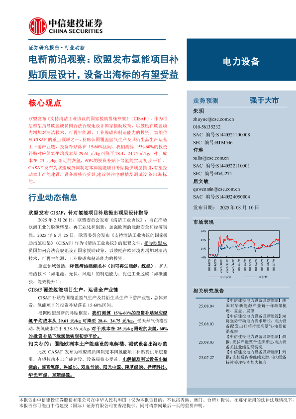 【中信建投证券】【202508】电新前沿观察:欧盟发布氢能项目补贴顶层设计,设备出海标的有望受益-15页