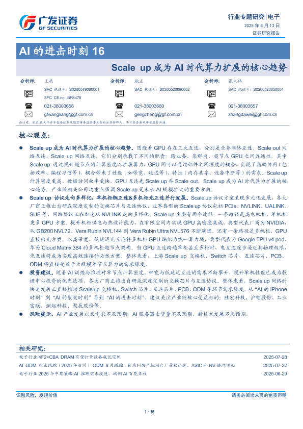 【广发证券】【202508】AI的进击时刻 16:Scale up成为AI时代算力扩展的核心趋势-16页