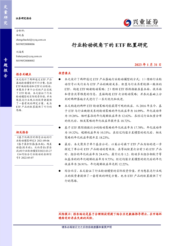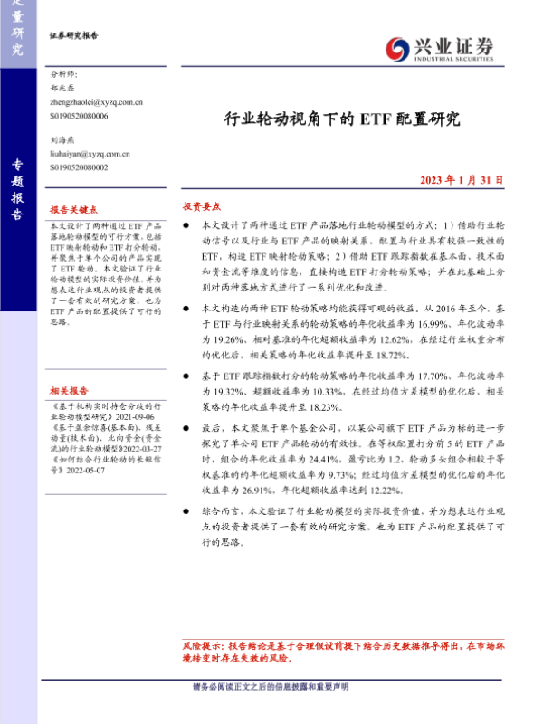 【兴业证券】【20230131】行业轮动视角下的ETF配置研究-32页