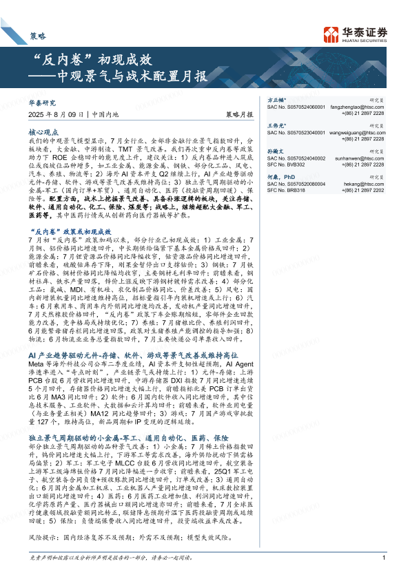 【华泰证券】【202508】策略月报-中观景气与战术配置月报:“反内卷”初现成效-31页
