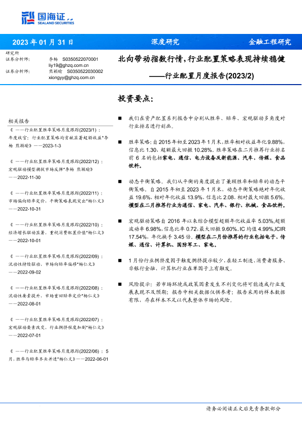 【国海证券】【20230131】行业配置月度报告:北向带动指数行情,行业配置策略表现持续稳健-19页
