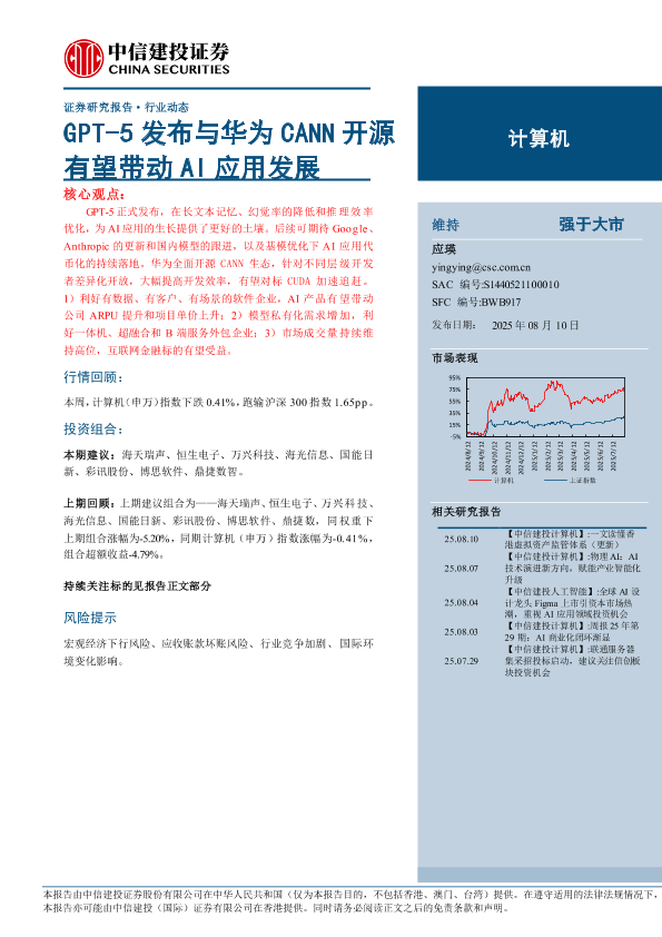 【中信建投证券】【202508】GPT-5发布与华为 CANN开源 有望带动 A I应用发展-14页