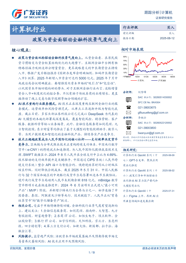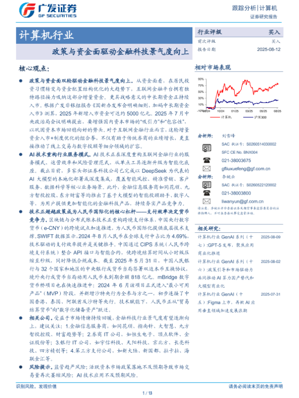 【广发证券】【202508】计算机行业:政策与资金面驱动金融科技景气度向上-13页
