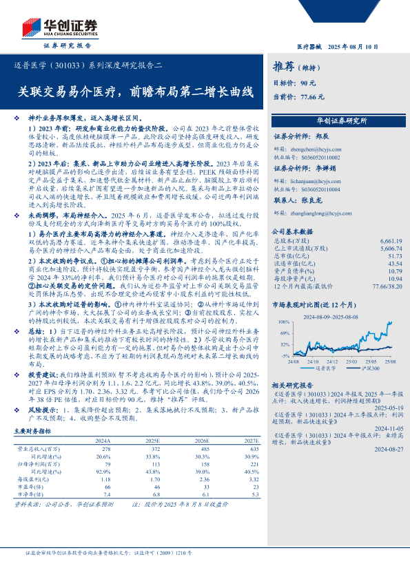 【华创证券】【202508】迈普医学(301033)系列深度研究报告二:关联交易易介医疗,前瞻布局第二增长曲线-24页