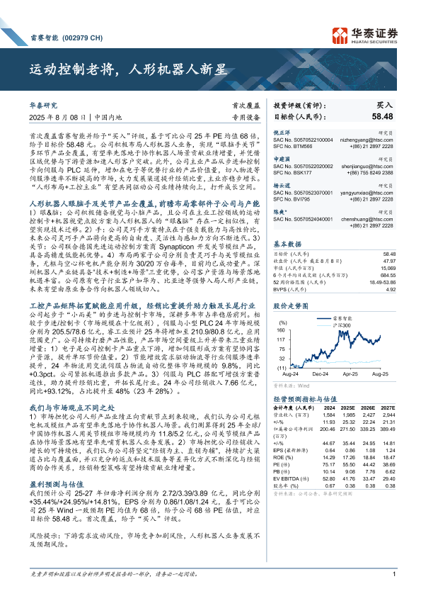 【华泰证券】【202508】雷赛智能(002979 CH) 运动控制老将,人形机器人新星-39页