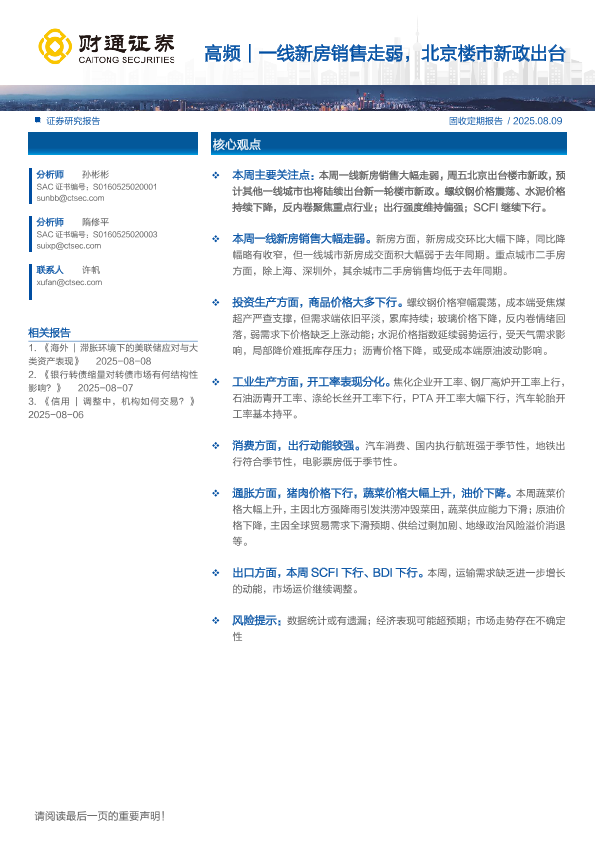【财通证券】【202508】高频|一线新房销售走弱,北京楼市新政出台-14页