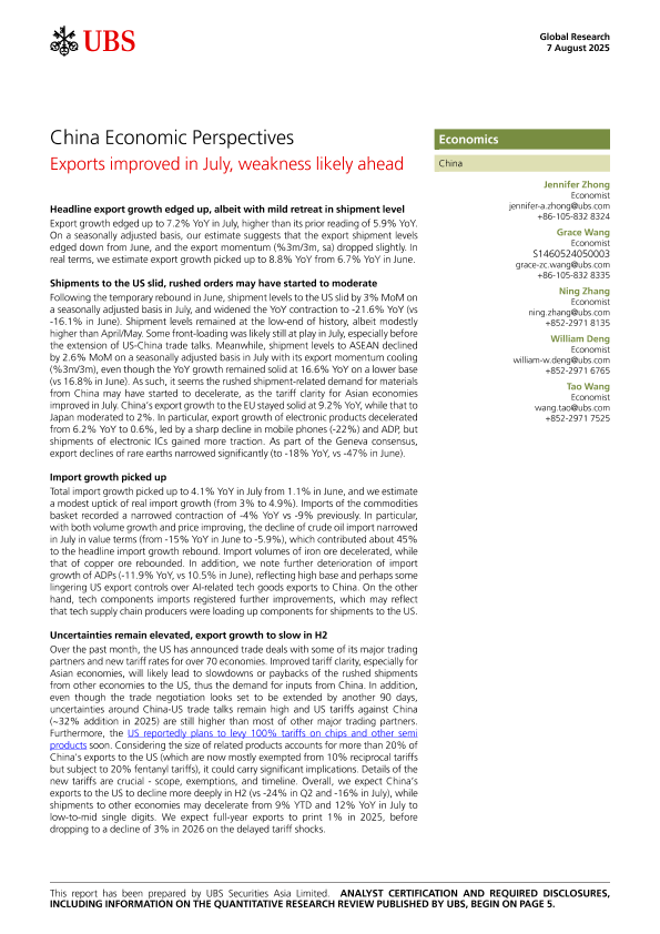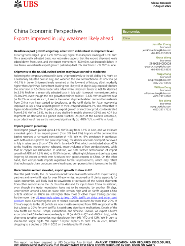 【UBS】【202508】Exports improved in July, weakness likely ahead-8页