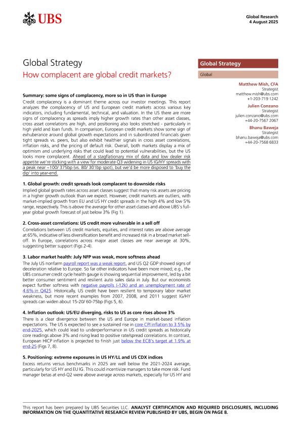 【UBS】【202508】How complacent are global credit markets-11页