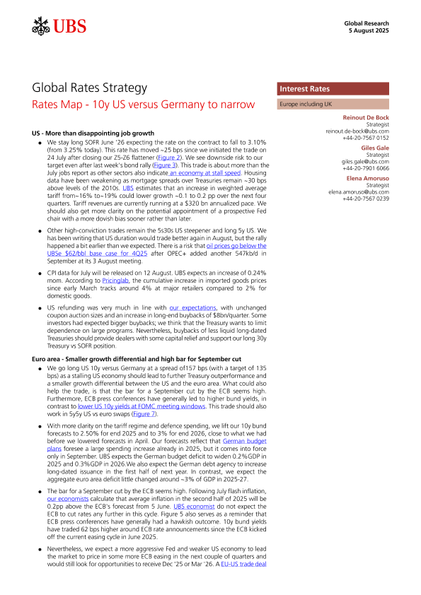 【UBS】【202508】Global Rates Strategy Rates Map-10y US versus Germany to narrow-12页