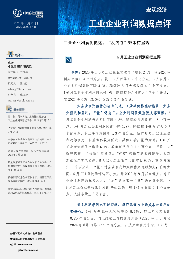 【中诚信国际】【202506】工业企业利润仍低迷,“反内卷”效果待显现-7页