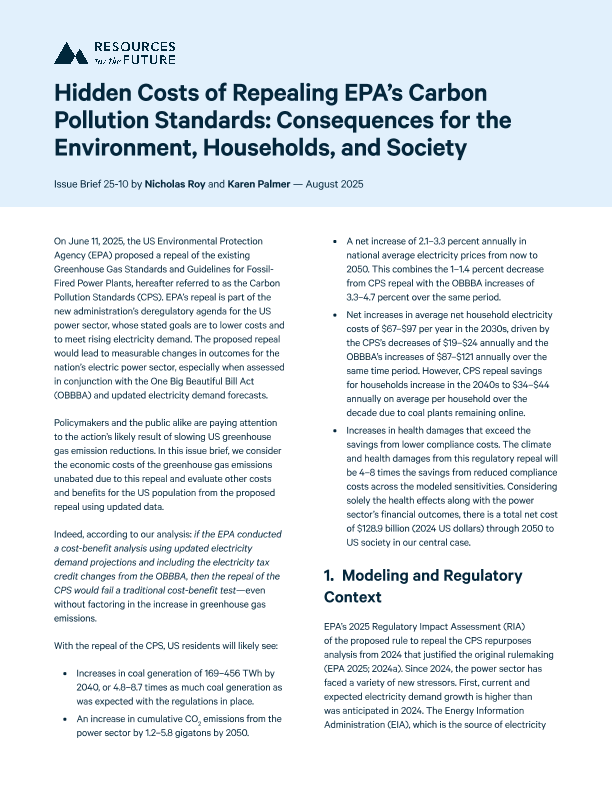 【Resources for the Future】【2025】Hidden Costs of Repealing EPA’s Carbon Pollution Standards Consequences for the Environment, Households, and Society-9页