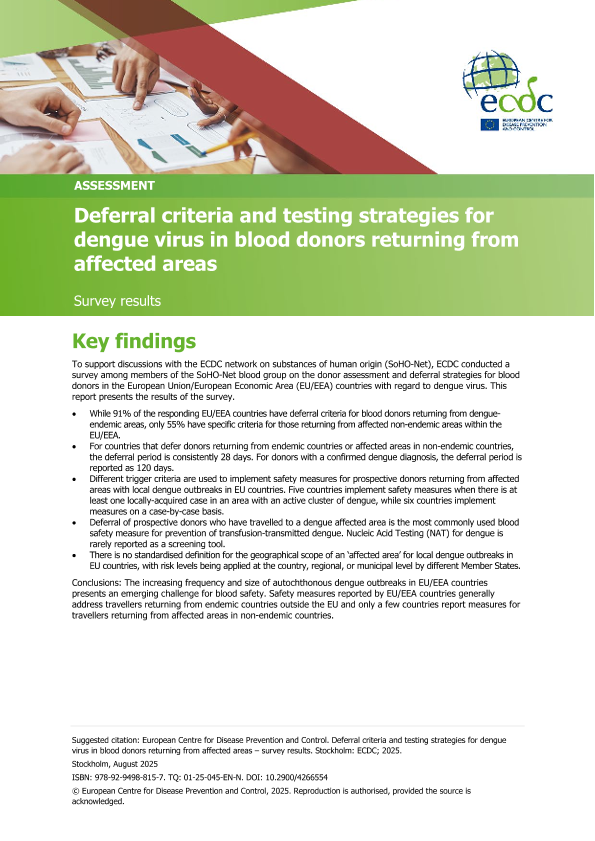 【European Centre for Disease Prevention and Control】【202508】Deferral criteria and testing strategies for dengue virus in blood donors returning from affected areas – survey results-15页
