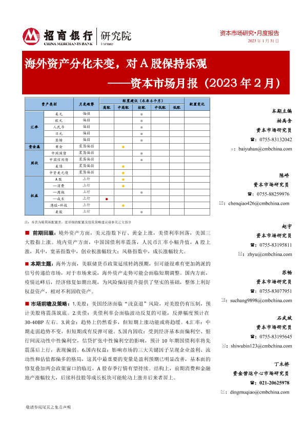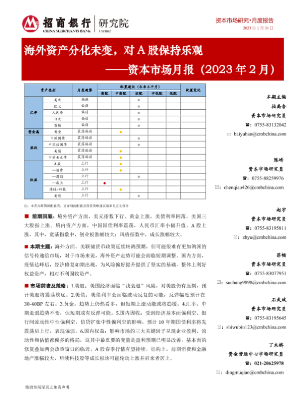 【招商银行】【20230131】资本市场月报(2023年2月):海外资产分化未变,对A股保持乐观-27页