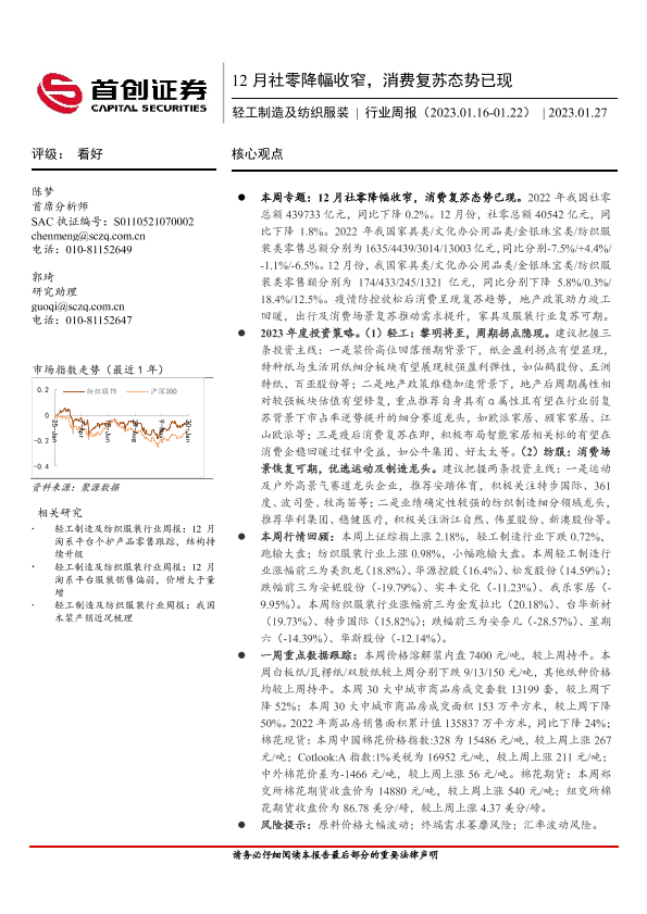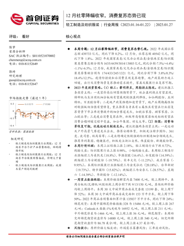【首创证券】【20230127】轻工制造及纺织服装行业周报:12月社零降幅收窄,消费复苏态势已现-16页