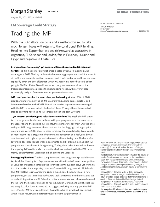 【Morgan Stanley】【20210824】摩根士丹利-新兴市场投资策略-主权信用:国际货币基金组织的贸易-24页