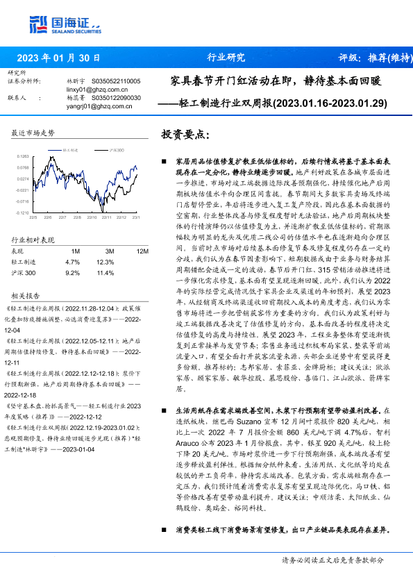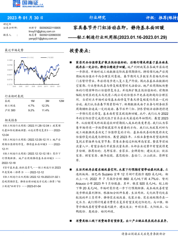 【国海证券】【20230130】轻工制造行业双周报:家具春节开门红活动在即,静待基本面回暖-26页