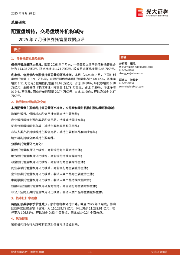【光大证券】【202508】2025年7月份债券托管量数据点评:配置盘增持,交易盘境外机构减持-11页