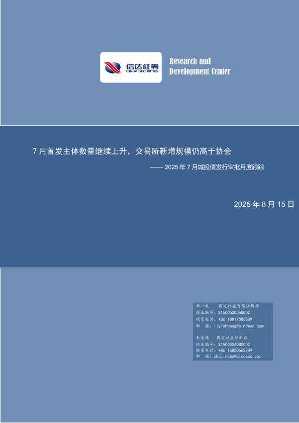 【信达证券】【202508】2025年7月城投债发行审批月度跟踪:7月首发主体数量继续上升,交易所新增规模仍高于协会-19页