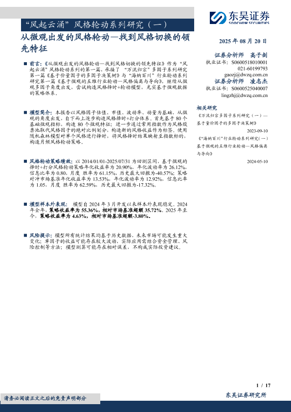 【东吴证券】【202508】“风起云涌”风格轮动系列研究(一):从微观出发的风格轮动,找到风格切换的领先特征-17页