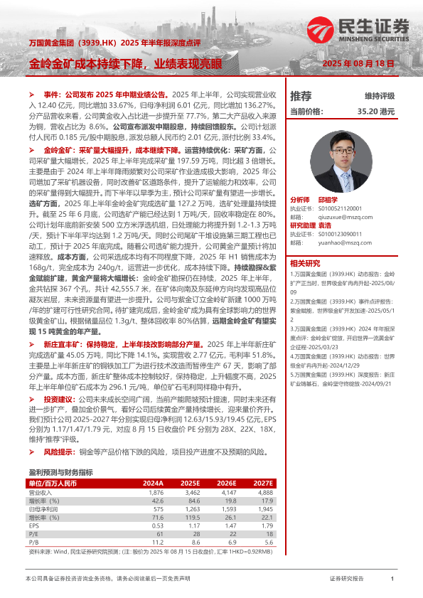 【民生证券】【202508】万国黄金集团(3939.HK)2025年半年报深度点评-13页