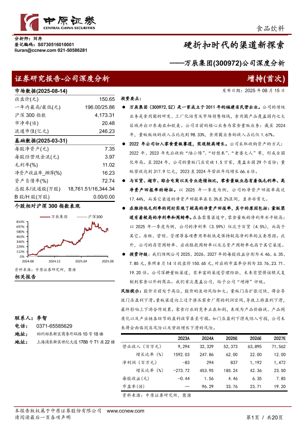 【中原证券】【202508】万辰集团(300972)公司深度分析:硬折扣时代的渠道新探索-20页