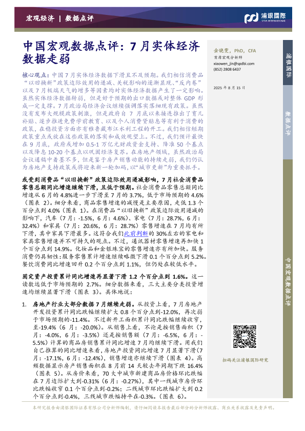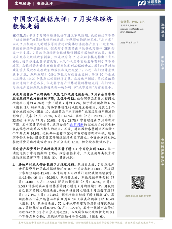 【浦银国际】【202508】中国宏观数据点评:7月实体经济数据走弱-10页
