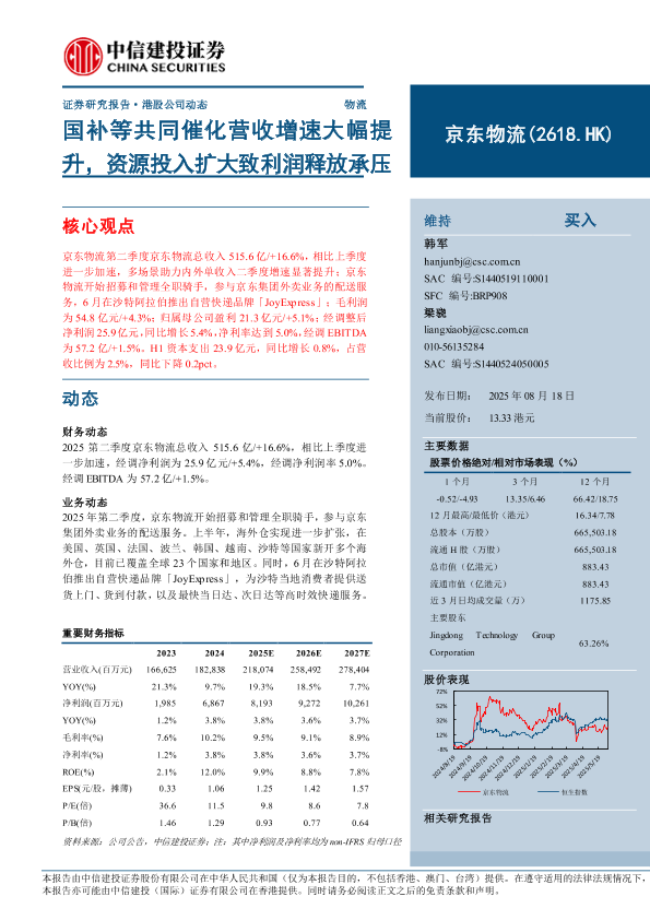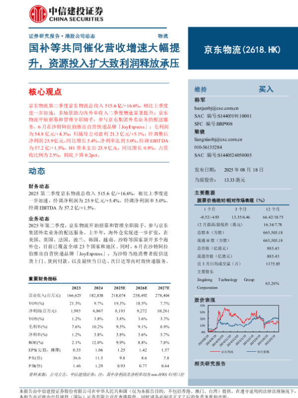 【中信建投证券】【202508】京东物流国补等共同催化营收增速大幅提升,资源投入扩大致利润释放承压-10页