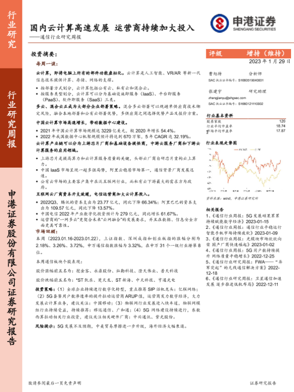【申港证券】【20230129】通信行业研究周报:国内云计算高速发展 运营商持续加大投入-17页