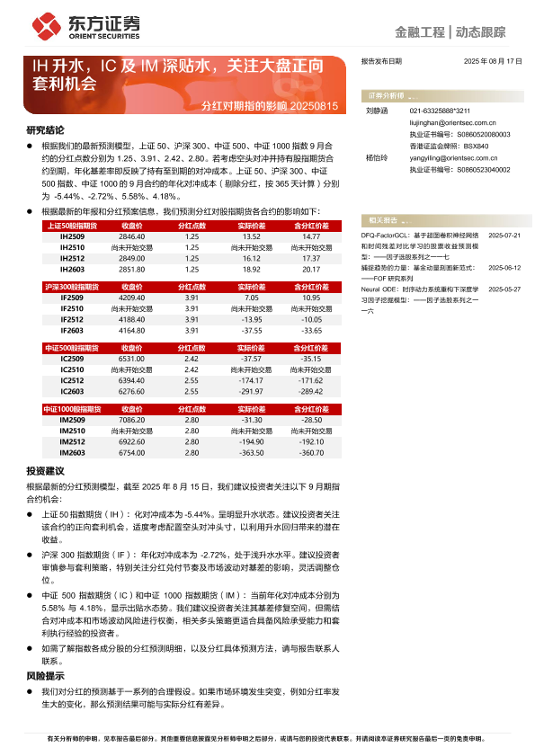 【东方证券】【202508】分红对期指的影响:IH升水,IC及IM深贴水,关注大盘正向套利机会-10页