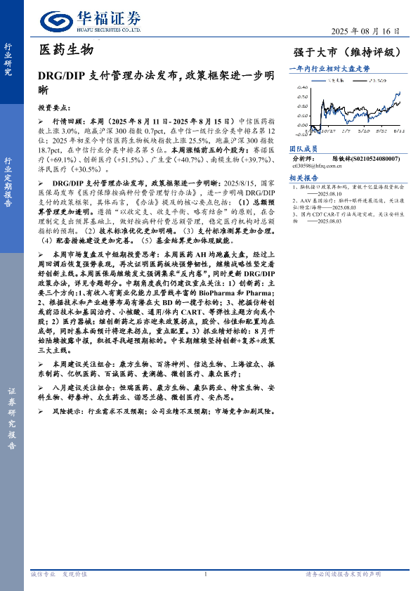 【华福证券】【202508】医药生物行业定期报告:DRG/DIP支付管理办法发布,政策框架进一步明晰-12页