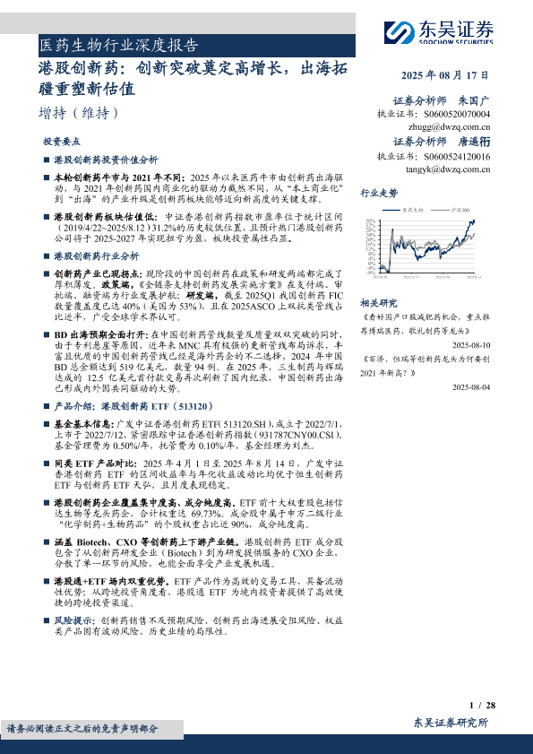 【东吴证券】【202508】医药生物行业深度报告:港股创新药,创新突破奠定高增长,出海拓疆重塑新估值-28页